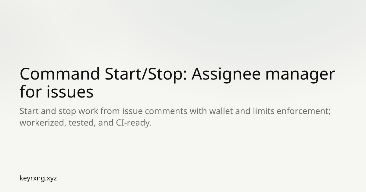 Start and stop work from issue comments with wallet and limits enforcement; workerized, tested, and CI-ready.