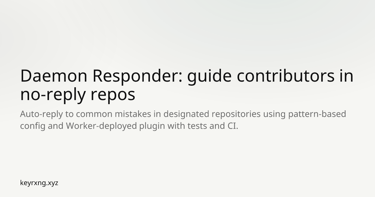 Auto-reply to common mistakes in designated repositories using pattern-based config and Worker-deployed plugin with tests and CI.
