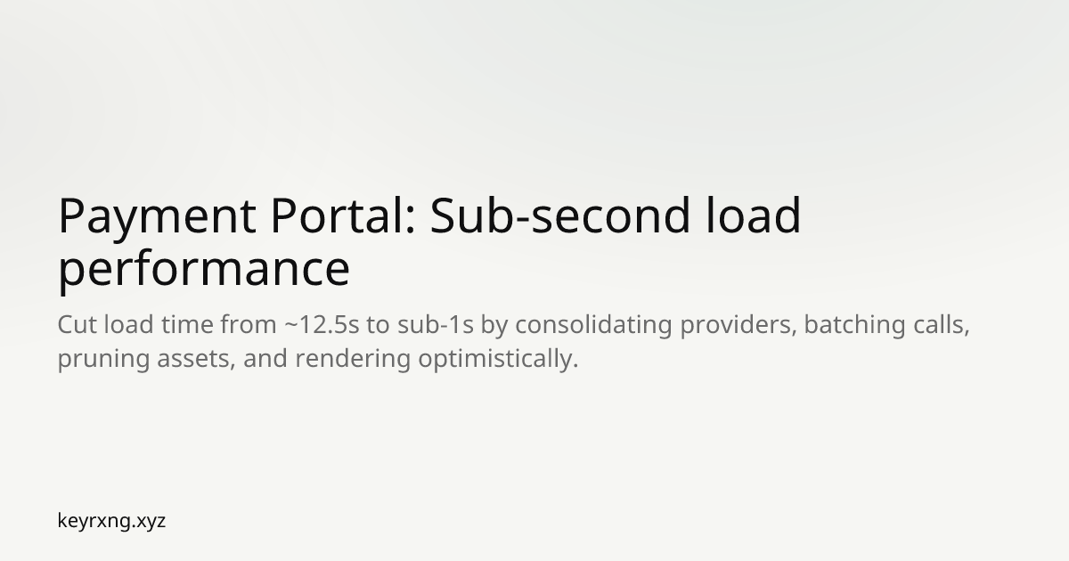 Cut load time from ~12.5s to sub-1s by consolidating providers, batching calls, pruning assets, and rendering optimistically.