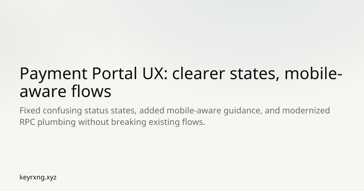 Fixed confusing status states, added mobile-aware guidance, and modernized RPC plumbing without breaking existing flows.