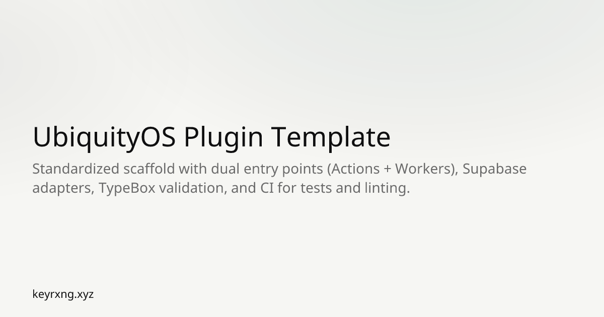 Standardized scaffold with dual entry points (Actions + Workers), Supabase adapters, TypeBox validation, and CI for tests and linting.