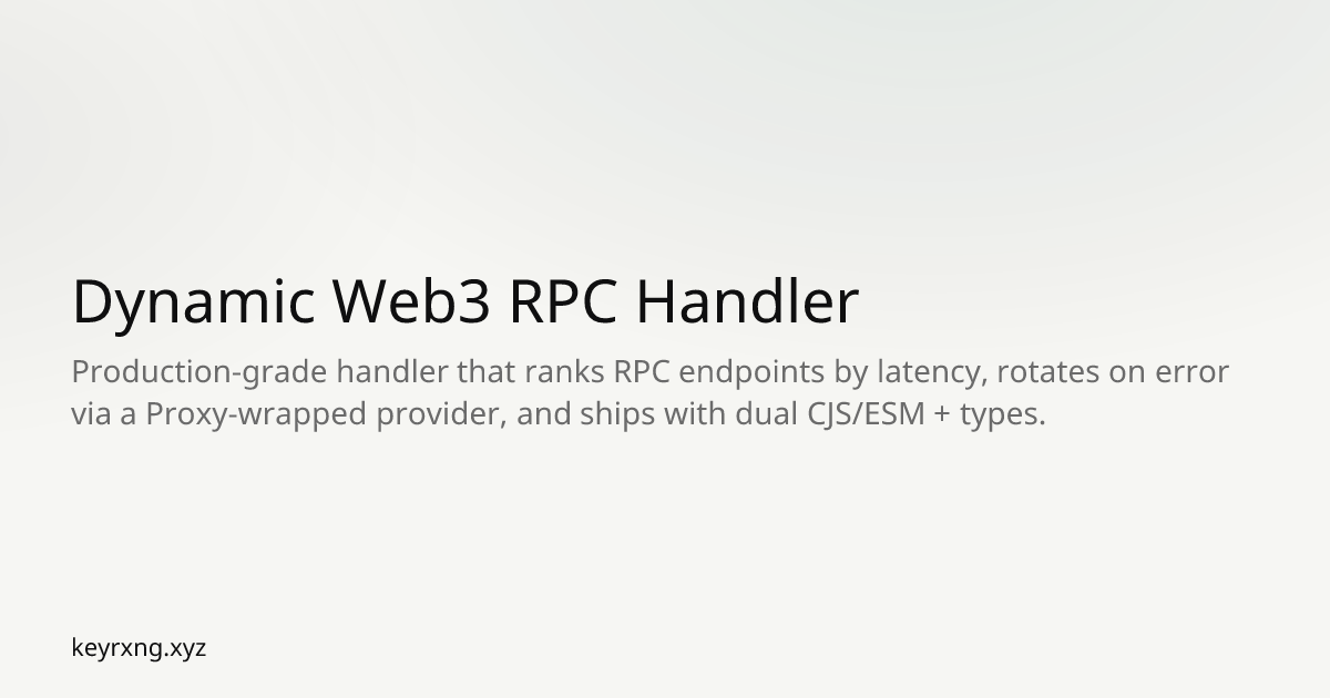 Production-grade handler that ranks RPC endpoints by latency, rotates on error via a Proxy-wrapped provider, and ships with dual CJS/ESM + types.