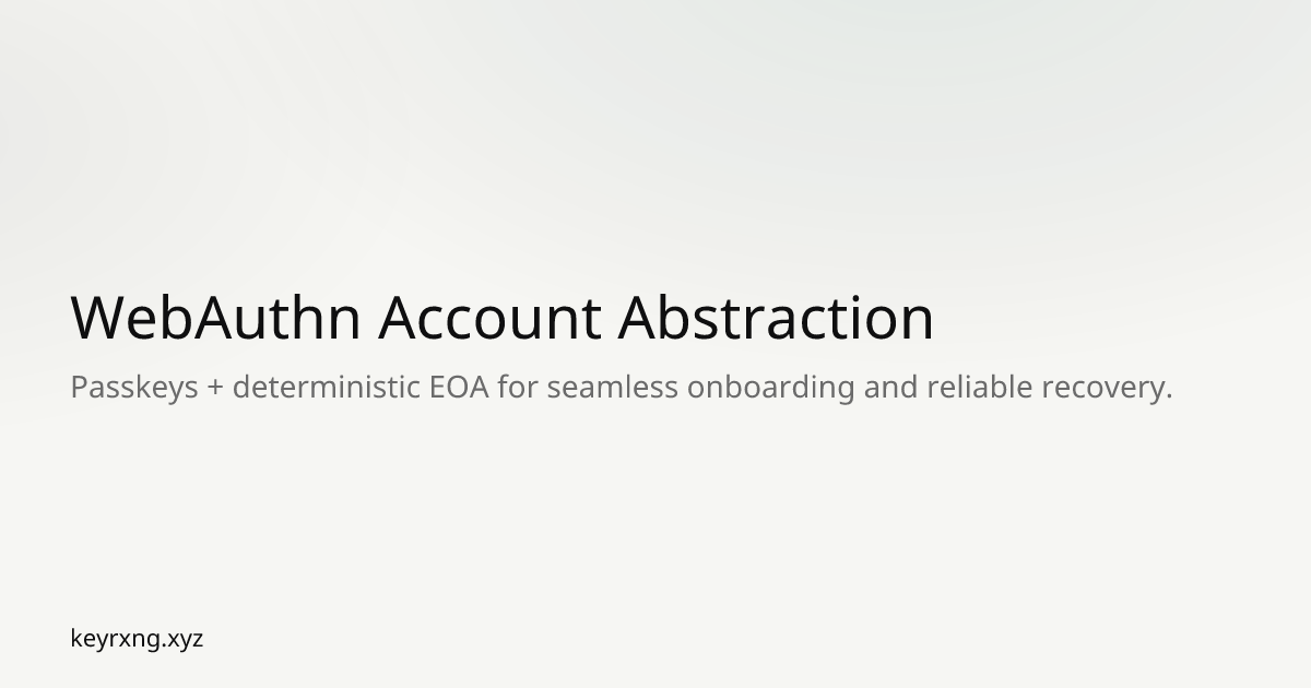 Passkeys + deterministic EOA for seamless onboarding and reliable recovery.